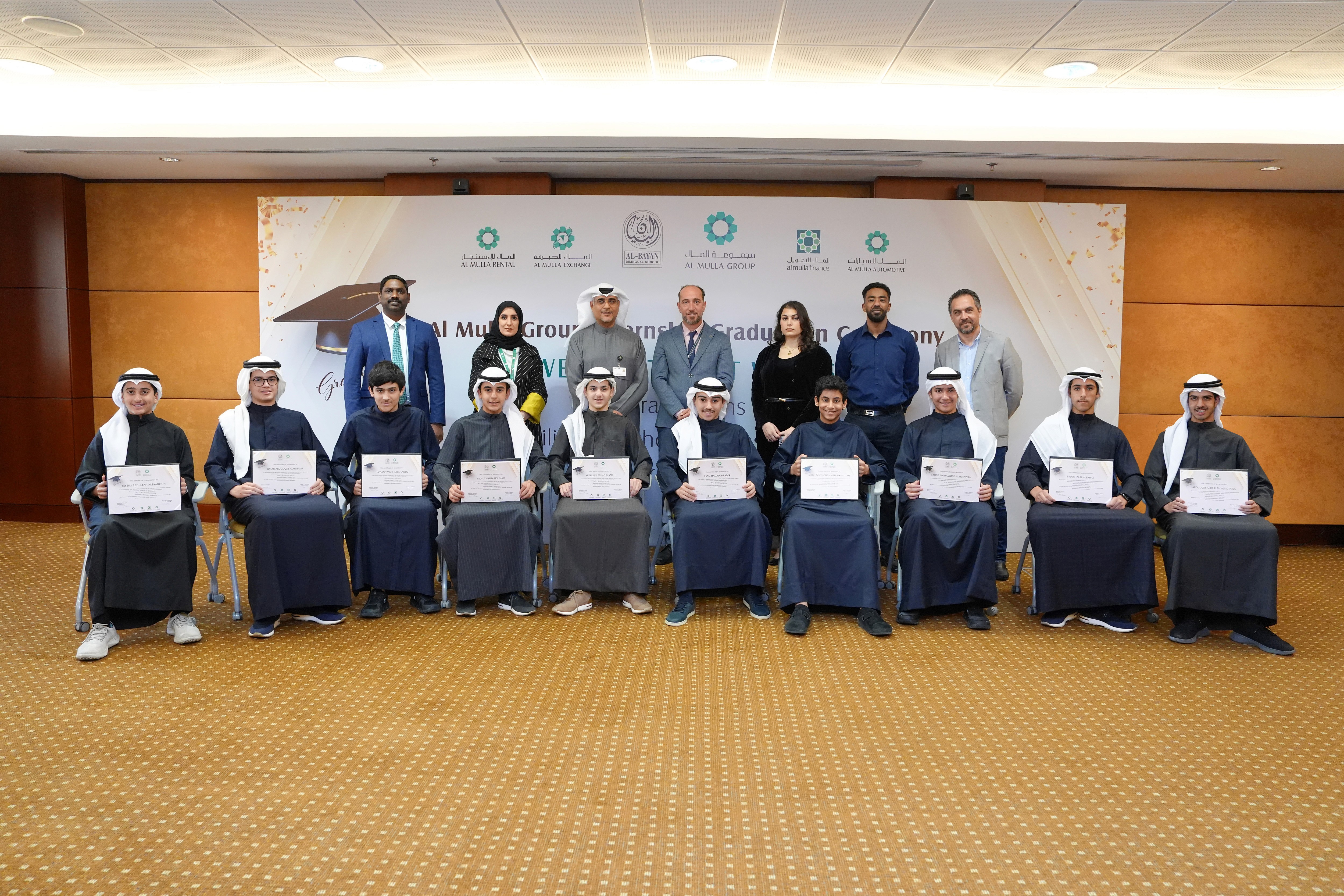 The program concluded with a graduation ceremony at Al Mulla Group’s Head Office in Shuwaikh, where certificates were presented to the interns by Mr. Faisal Almatar, Director of Group Human Resources; Ms. Maryam Al Kandari, Manager of Human Resources; and Mr. Mahendran Lakshmanan, Senior Manager – Human Resources, Al Mulla Automotive. Representatives from BBS senior management, along with members of Al Mulla Group’s Human Resources and Corporate Communications teams, joined the celebration to recognize the students’ enthusiasm, dedication, and outstanding engagement throughout the program.